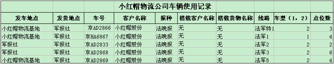 例如:北京某报纸配送企业,调度人员首先将配送单(包含:车牌号码、报种、搭载货物名称等)导入系统,配送单格式: