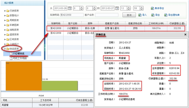 2.查看后台物流信息报表 — 司机工作明细